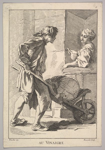 Giovanni David created this print, "The Tired Wigmaker," during the late 18th century. The image captures a moment of vulnerability, reflecting the social and economic realities of the working class in that era. The wigmaker's exhaustion speaks volumes about the physical and emotional toll of his labor. We can imagine the long hours, the repetitive motions, and the pressure to meet the demands of fashion. The wig itself, prominently displayed, becomes a symbol of the superficiality and relentless pace of trends. David develops an alternative narrative of the working class, diverging from traditional idealized representations. The French quote beneath the image which states that he changes spirit every day as does fashion further emphasizes this theme of the cost of keeping up with fashion. This print invites us to reflect on the human cost behind the artifice of appearances. It serves as a poignant reminder of the unseen labor that shapes our world.