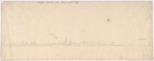Curator: Here we have a pencil drawing by Jan Mankes, titled "Haven van Scheveningen," likely created sometime between 1899 and 1920. It depicts a harbor scene with light pencil work on toned paper. Editor: It's incredibly understated. The faded paper gives it an immediate feeling of distance, of looking into a past that's hard to grasp. There’s a delicate fragility in the lines themselves. Curator: The seeming simplicity speaks to Mankes’ broader artistic interest in capturing the essence of the everyday. Scheveningen, being a seaside town, would have been ripe with visual cues, not just for scenery but also the cultural weight it holds as a trade point and place of gathering. Editor: Right, and looking at the almost skeletal piers and the tiny figures walking along them, it almost feels…desolate. Scheveningen has a complex history of being rebuilt after war damage, also struggling with worker exploitation of local fishermen—I find myself projecting those narratives onto this harbor view. Curator: Interesting. I see more of a meditation on impermanence. Look how fleeting the pencil strokes are, mimicking the ever-changing nature of the sea. The light pencil work certainly emphasizes atmosphere over detailed record keeping. And how the toned paper adds warmth, imbuing a comforting if somber mood. Editor: I agree that there’s a real warmth, but I’m also wondering who this harbor truly serves? It seems quite emptied out. There may be very little going on here, or this may be prefiguring great upheaval. Curator: Mankes frequently used simple compositions to convey larger feelings, universal themes like home, belonging, nature's hold… Even in what might appear as unremarkable or empty, there's always the potential to draw out hidden beauty and emotional insight, right? Editor: Absolutely, and to uncover untold, and often difficult stories, that shape even the quietest of scenes. In looking at a drawing of something apparently unremarkable, Mankes gives us an insight on the world with so much to read behind the simplest gesture.