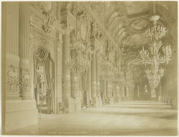 This photograph captures the foyer of the Paris Opera. The anonymous photographer, known only as X phot., made this image to showcase the stunning architecture. The cultural references here point to the opulence of 19th-century France under the Second Empire. Note how the design embodies wealth and power, evident in the elaborate ornamentation, towering columns, and grand chandeliers. This isn't just a building; it's a stage for social display. The Paris Opera was conceived by Napoleon III as a symbol of imperial authority. Its construction coincided with a period of massive urban renewal led by Baron Haussmann. It visually reinforced existing social hierarchies, serving as a space where the elite could see and be seen. To truly understand the photograph, one must research the historical context of its making and the socio-political forces that shaped its creation. By studying architectural plans, social documents, and critical writings, we can decipher the complex meanings embedded in this image.