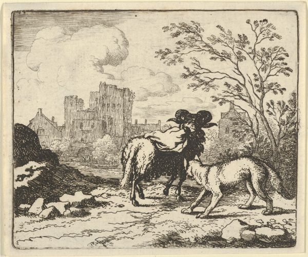 Marcus Gheeraerts made this print, “Fable of the Wild Boar and the Donkey”, using an engraving technique. This painstaking process involves cutting lines into a metal plate with a tool called a burin. Ink is then applied to the plate, and the surface is wiped clean, leaving ink only in the incised lines. Finally, paper is pressed against the plate to create the print. Look closely and you can almost feel the textures: the bristly hair of the boar, the smooth coat of the donkey, and the rough stones of the landscape. The technique allows for incredible detail, which is a key part of the print’s appeal. Prints like this were not only art objects; they were also a means of circulating ideas and stories. The fable depicted here, with its moral lesson, would have resonated with a wide audience. Engravings were a key part of the rise of visual culture, making art accessible to a growing public and blurring the lines between craft, illustration, and fine art.