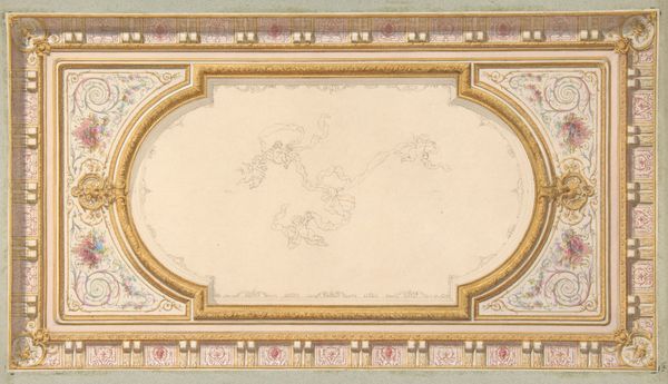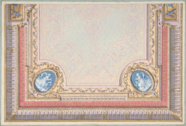Jules-Edmond-Charles Lachaise designed this ceiling with trompe l’oeil balustrade and putti. It is rendered in graphite, pen and watercolor. The design reflects the values of the French upper classes who would have lived in such a room. The cherubic putti and pastel hues show a desire for beauty and an affirmation of wealth and privilege. The artistic conceit of the trompe l’oeil, or ‘fool the eye,’ effect, was a popular baroque technique used to create the illusion of three-dimensionality and grandeur in interior spaces. The image reflects a desire to visually expand interior spaces. In reality, this was a way to signal social dominance and cultural authority. To understand the social context of a design like this more deeply, one might look to the history of interior design, and the place of country houses in the French social imagination.