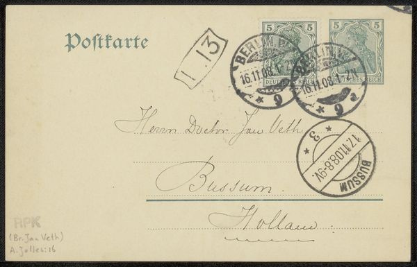 This postcard was penned by Johannes Martinus Messchaert to Jan Veth, and carries stamps postmarked in 1903. Look at how the ink moves across the surface, how the pressure varies, creating thicks and thins – you can almost feel the hand guiding the pen, responding to the paper's texture. The cursive script itself becomes a kind of drawing, a dance between intention and chance. See how the loops of the letters rise and fall, each stroke carrying its own weight and rhythm. There's a raw, immediate quality to it, like a fingerprint of the artist’s thought. It makes me think of Cy Twombly's scribbled paintings, where language breaks down into pure gesture, and meaning is found not in legibility, but in the energy of the line. This postcard reminds us that art is just one person talking to another, a message in a bottle cast out into the sea of time. The real beauty of art lies in the questions it opens up, not the answers it provides.