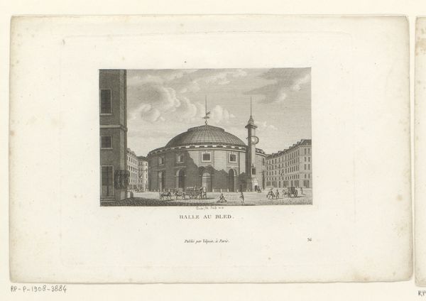 Editor: This engraving, "Gezicht op het Paleis van Justitie te Parijs" by François Louis Couché, dating back to 1818, offers such a rigid and formal view of the Parisian courthouse. I'm curious how you interpret this piece? Curator: This isn't just a cityscape; it's a loaded depiction of power in post-revolutionary France. How might the choice to portray the Palais de Justice in such a rigid, almost sterile manner, reflect the political climate of the time? What does the architecture communicate? Editor: Well, I notice the architectural style is very Neoclassical which reminds me of the ideals of the Roman Republic and the period’s values around logic, order, and reason... Curator: Exactly! Neoclassicism was embraced to visually reinstate "order" after the turmoil of the revolution, projecting stability and legitimate authority. What do you notice about who, or what, is included—or excluded—from the frame? Editor: There are a few tiny figures but their purpose or individuality doesn't seem relevant at all. This may sound weird, but I guess this gives center stage to the authority and dominance of architecture over daily life... Curator: Precisely. Consider the history embedded in those stones. The Palais was not untouched by the revolution; it housed the Revolutionary Tribunal. Presenting it this way—cleansed, rationalized—works to suppress other potential readings. Editor: So, by focusing on the imposing facade, the artist might be downplaying more complex social or political realities associated with the site? Curator: Exactly. Consider this print a visual statement that deliberately reshapes public memory. It begs the question, how do institutions use aesthetics to legitimize themselves? Editor: I see it now. I had originally just considered the aesthetic; I had missed how actively this piece participates in crafting and controlling narratives around justice and authority! Curator: Absolutely. By examining art in its socio-political context, we can expose its role in power dynamics and social control.