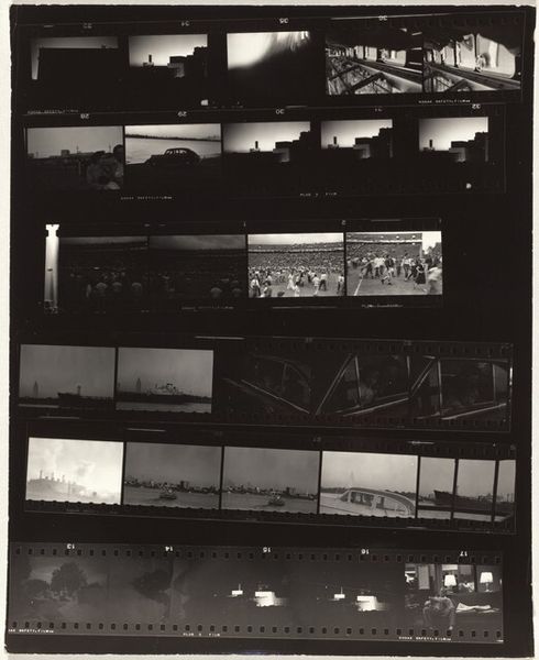 Curator: This photograph captures György Kepes's "Kinetic outdoor light mural for the Radio Shack in Boston" from 1950. What strikes you most immediately? Editor: The contrast! Stark white lines against a textured dark background. It’s both visually arresting and kind of… industrial, I guess. Makes me think about the role of light and communication. Curator: Communication is key. Kepes was deeply interested in the relationship between art, science, and technology. The mural, an early example of kinetic art, speaks to postwar optimism surrounding technological advancement. Editor: Absolutely. I see the piece itself, with its pulsating lines and what appear to be electronic diagrams, pointing towards modes of production, of electricity and the post-war enthusiasm towards technology and social progress. But, Radio Shack? A commercial enterprise co-opting avant-garde ideas. Curator: Indeed, situating the piece within the context of post-war America, it becomes fascinating to analyze the interplay between consumer culture and artistic expression. It embodies both promise and potential capitalist appropriation, perhaps revealing underlying societal tensions and gendered labor practices in an era marked by profound societal shifts. Editor: Right. Beyond the social implications, the materials matter too. The translation of a potentially huge-scale light mural into a photograph flattens the dynamic kinetic experience and makes us consider its existence now through documentation of the process, the record of it, maybe making this photograph as, if not more, valuable than the initial outdoor mural? Curator: It also reminds us how images and symbols can become entangled with capitalist ideology, especially during an era defined by unprecedented media proliferation. Editor: I see how this examination highlights the often unseen labor and power structures behind cultural production. A good reminder that the impact of artwork relies heavily on how it gets displayed, recorded, and, ultimately, experienced and used. Curator: A most valuable point indeed. The intersectional dialogue, the historical and social context…It reveals something about the promise and appropriation inherent to technology, culture and capital. Editor: Exactly. And I think its legacy remains impactful in today’s media and digital landscape, in ways perhaps more apparent to later audiences than people in 1950s Boston.