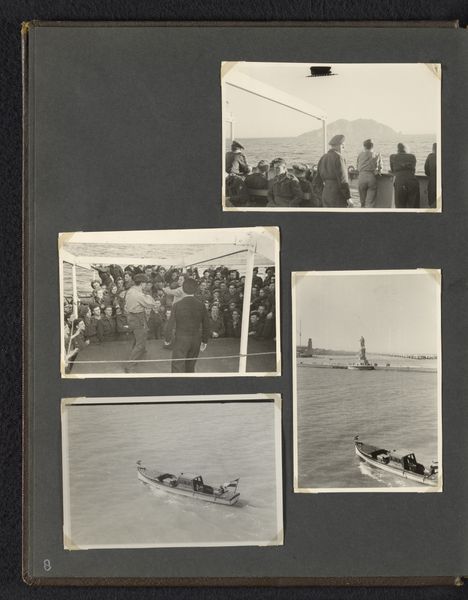 Curator: Editor: So this is “Zeiltocht (2)”, a photography piece by an anonymous artist from around 1910 or 1911, printed using the Albumen process. There's a clear interest in documenting different facets of sailing. I am immediately drawn to how the process accentuates the textural contrasts - smooth water, detailed clothing and rigging, which altogether gives the work a layered look and interesting finish. What's your initial impression? Curator: Well, it strikes me first as a collection documenting a specific social context. Albumen prints were popular, enabling mass production, meaning photography became accessible. These scenes of leisure are quite deliberate. Consider how the various photographic vantage points highlight the activity – note the contrast between working and upper class – this highlights how processes are intimately linked with their social frameworks. The use of photography and printing is thus democratizing art. The sailing is of course still exclusive for the portrayed individuals, so what exactly do you think this contrast might convey about those times? Editor: It feels like an attempt to freeze a very specific kind of lifestyle into existence - or perhaps more broadly, that new technologies allow leisure to become a theme, perhaps an object, worthy of art itself. Do you think there’s anything more to be gained by considering what's deliberately *not* captured? Curator: Precisely. It raises questions about visibility and exclusion. The working class who constructed and operated these sailboats; what were the labor conditions, what’s the environmental impact? How does focusing solely on leisure sanitize and rewrite broader socio-economic relations tied to maritime industries, even back then? Editor: I hadn't really thought about that! The way the photograph is created, and how it's circulated becomes almost as important as what it depicts. Thank you, that's an interesting new perspective. Curator: Glad to open new venues! Thinking critically about artistic creation reveals underlying power dynamics. That should serve well when analyzing materials of leisure or of more weighty import.