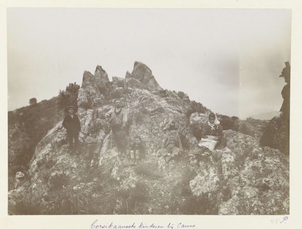 Editor: This photograph, "Dernier pie du Cimon de la Pala," by Vittorio Sella, is really striking. It's just two figures standing atop this incredibly rugged, imposing mountain. What's your take on why this image resonates so strongly? Curator: Well, consider the late 19th century context. Mountain photography became popular as nations expanded and sought to map and claim territory. These images weren't just about capturing beauty; they were about asserting dominance, weren't they? Editor: So, the photograph is also a document of exploration and perhaps even power? Curator: Precisely. These seemingly objective records played a role in shaping perceptions, influencing policy, and even promoting nationalistic sentiment. Sella's work is implicated in that broader socio-political project. Editor: That gives me a whole new perspective. Thanks! Curator: Absolutely. Thinking about how images function within larger historical narratives changes everything.