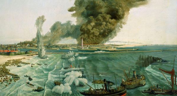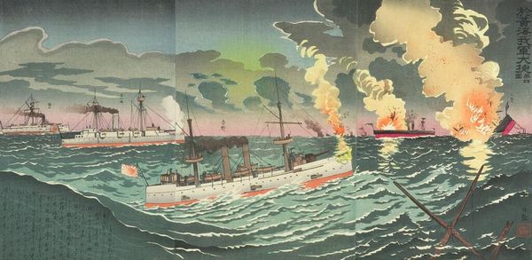 Editor: So, here we have Adolf Dietrich’s *Schiffuntergang vor Berlingen*, or *Shipwreck off Berlingen*, rendered in oil paint. It's hard to pin down the exact date, but the scene itself is so dramatic! The explosion, the chaos... It really captures a sense of impending disaster. How do you interpret this work? Curator: That explosion dominates, doesn’t it? Consider how Dietrich, as a so-called “naive artist,” was engaging with the grand narratives of his time through the lens of a specific, perhaps local, disaster. The figures frozen on the docks almost seem like a painted audience. How does that detail shift your perception of the scene? Editor: It makes me wonder if this isn’t just about the wreck itself. Are we meant to think about the spectacle of disaster? The people watching seem almost… detached? Curator: Precisely. That tension is key. The painting exists within a historical context saturated with images of war and catastrophe. The "naive" style then creates a unique distance, a flattened emotional register that reflects back on the broader consumption of tragedy as a public event. Consider the work's title - is it drawing attention to a historical shipwreck? Or to Berlingen, the city it takes place in? How does that influence how we consume the art itself? Editor: That’s fascinating. I was initially focused on the visual drama, but you've brought up the complicated role of the viewer – both in the painting and in the museum. It challenges the romantic idea of art just being about personal expression. Curator: Exactly. Dietrich is forcing us to confront how even the most seemingly straightforward images are shaped by and contribute to broader cultural narratives. It's not just about a shipwreck, but how society processes the idea of a shipwreck. Editor: I’ll definitely look at other works from that period differently now. This has really opened my eyes to the political dimension of landscape painting.
