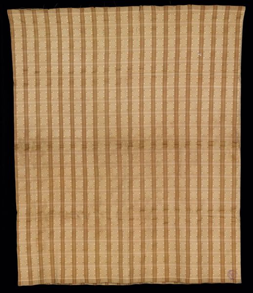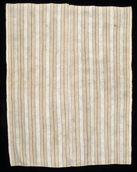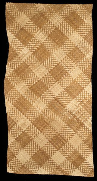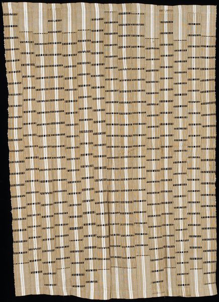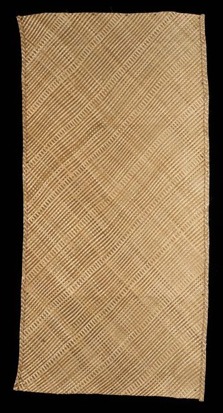 Editor: Here we have an intriguing object, a Ceremonial Mat dating from around the 20th century. It's a textile piece using fibre-art and weaving techniques. What strikes me is how the simple geometric pattern creates such a visually rich surface. What do you see in this piece, beyond the immediate visual appeal? Curator: The "immediate visual appeal" as you say, is precisely where we should start. Indigenous art, and the institutions that display it, frequently grapple with representation. Whose "ceremony" is this, and how do we know? Who chose to frame it as art and display it within a museum context, thereby altering its original social function? Editor: That’s a very good point. So, it's about questioning the power dynamics inherent in exhibiting cultural objects? Curator: Precisely. Consider how the act of preservation and display elevates certain objects and simultaneously removes them from their living context. How does this mat's inherent cultural significance shift when placed within a Western art institution? What narratives are privileged, and what voices are potentially silenced? Editor: So it is more about the exhibit rather than the exhibit itself? Curator: Not entirely, but it encourages one to critically assess the act of interpretation, and the power of institutions to shape public understanding. What function would it serve outside the walls of the museum, for those that would've interacted with it in everyday or spiritual contexts? This consideration allows for a richer, more nuanced encounter. Editor: This really highlights the responsibilities museums have in presenting cultural artifacts. I will remember to analyze from an historic institutional approach for next time! Curator: A promising approach, and something I will definitely use moving forward as well!