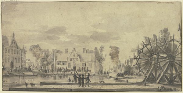 Editor: So, here we have William Chappel's "The Garbage Cart," created around 1870. It’s a watercolor and colored pencil work. It's sort of unassuming at first glance, but I’m drawn to how it captures a mundane city scene. What symbols or meanings do you find particularly interesting here? Curator: Notice how Chappel positions the garbage cart, almost centrally. It's not idealized, yet it's presented within a cityscape that hints at burgeoning urban life. Garbage collection itself is rarely the subject of art, yet its presence tells us about a growing population and the systems needed to manage it. Consider this: What did "garbage" represent at that time, not just literally, but as a symbol of societal progress and its overlooked consequences? Editor: That’s a great point! I was so focused on the charm of the houses that I overlooked the cart’s prominence. It really does suggest a society grappling with its own waste. Curator: Exactly. And it begs the question: is the garbage cart simply practical, or does it take on a darker symbolic weight? How does this representation speak to a broader cultural anxiety of the 19th century – industrial expansion and environmental awareness. Think about the people, too, the woman carrying a basket, the figures beside the road: they're dwarfed by the mundane scene. Editor: Now that you mention it, it makes me wonder about labor and class divisions in this setting. The garbage collector’s job must’ve been pretty thankless. Curator: Precisely. Everyday life contains significant meaning that we may fail to interpret if we are simply looking at the apparent story in front of us. The painting serves not only as a cityscape study, but as a social narrative. Editor: That’s definitely changed how I view it. Seeing the garbage cart not just as an object but as a symbol reflecting social changes is fascinating. Curator: Indeed. And that shift is essential. Every image carries within it layers of history, culture, and meaning – waiting to be revealed.
