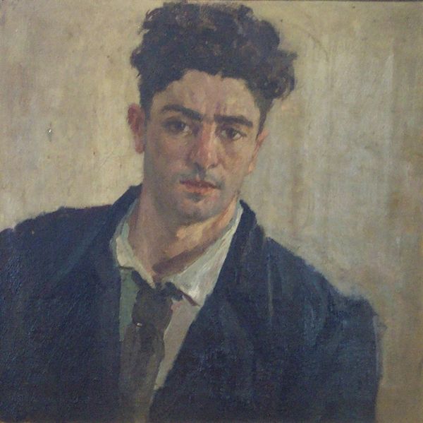 Editor: Here we have Clive Branson's "Portrait of a Worker," of indeterminate date, held at the Tate. The subject’s direct gaze and the visible brushstrokes give the piece a sense of immediacy. What’s your perspective on this work? Curator: The rough materiality of the paint application speaks volumes. Branson seems less concerned with idealized representation and more interested in conveying the physical reality of labor. Consider the economic conditions impacting both the artist and his subject. How might those shape our understanding? Editor: It highlights the dignity of labor, seeing the worker and not just the work. Curator: Precisely. By focusing on the means of production—both in the painting and in the worker's life—Branson challenges traditional hierarchies within art itself. Editor: I see that now, thanks! Curator: And I appreciate your insights into the subject, bringing it all to life.