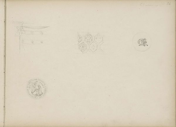 Curator: This small drawing, only about 15 by 19 centimeters, is titled *Floral Design* and it’s by Denman Waldo Ross. We don’t have a date for it. Editor: It feels incredibly fragile, almost like a breath on paper. The two floral forms, they're so lightly sketched, nearly disappearing into the page. Curator: Ross was quite interested in design theory, and his use of pencil here really emphasizes line and form. He explored color theory, too—he even invented a color harmony system! Editor: You know, looking at the way these blossoms are rendered, there's a feeling of something mass-produced—like a stamp or stencil. Were these designs intended for textiles, perhaps? Curator: Possibly. He was a collector of textiles, and influenced by the Arts and Crafts movement, so I think the idea of making art accessible was definitely on his mind. Editor: And that tension, between the handmade mark and the suggestion of mass production, makes this modest drawing quite compelling. Curator: Absolutely. It really invites us to think about the creative process, doesn't it?