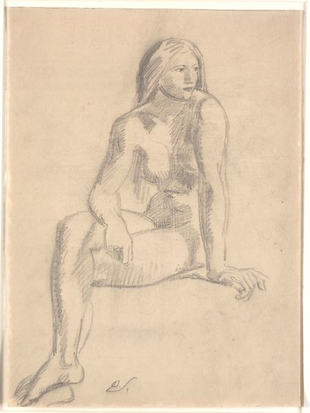 Editor: Here we have "A Nude Woman Seated, Facing Left, with Right Hand Raised" by Nicolai Abildgaard, made sometime between 1743 and 1809, a drawing rendered in ink on paper. It feels…classical, but the lines are so immediate, almost sketchy. What do you see in this figure's posture and gesture? Curator: The raised hand is key. It immediately activates associations, doesn’t it? Think of similar gestures across art history – supplication, invocation, even theatrical exclamation. Her slight contrapposto and coiled hair bring to mind ancient sculptures, fragments recovered from classical antiquity. But consider: why would Abildgaard choose this particular set of visual references? What feeling might this image evoke for his contemporary audience? Editor: Maybe it’s about idealized beauty, but with a rougher edge, less polished than a marble statue. Was he commenting on or updating those earlier images? Curator: Precisely! Look at how he uses shadow to model her form. Where does the light seem to originate? It almost feels internal, like knowledge illuminating her from within. Also note the position of her left hand; does she look vulnerable, maybe a little afraid? It makes us wonder about her state of mind and inner feelings. This artist is trying to give insight into an emotional experience. The woman becomes more human. Editor: So, this is more than just a study of form; it is using classical imagery to convey real human emotion? Curator: Absolutely. It’s about layering cultural memory with individual experience. Editor: I hadn't considered all the ways that posture and gesture, rooted in classical art, could add layers of emotional and cultural meaning here. Curator: Indeed. That is the power of an enduring image.