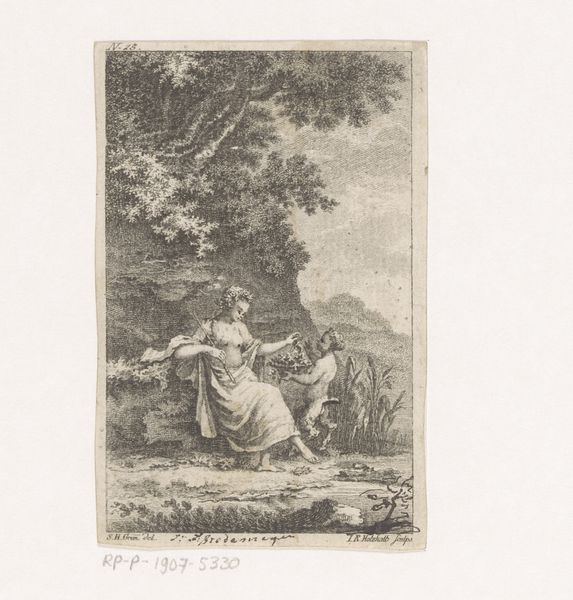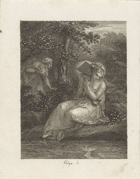 Claude Simpol’s "Lady with a Mirror," created around 1716, offers a study in contrasts through its monochrome palette and delicate application of wash and black chalk on paper. The composition pivots on the interplay between the detailed rendering of the lady and the ethereal quality of the surrounding landscape. The artist uses line and shadow to model form, focusing on the intricate folds of the lady’s dress and the feathery textures of the trees. Light becomes a key element, selectively illuminating her figure to draw our eye, while the background recedes into a soft obscurity. Simpol’s choice of medium and technique serves to not only capture a moment of introspection but also suggests the fleeting nature of beauty and perception, where clarity and ambiguity coexist. This artwork invites a contemplation on the structures of appearance and reality, reflecting the era's philosophical interest in the subtleties of visual experience.