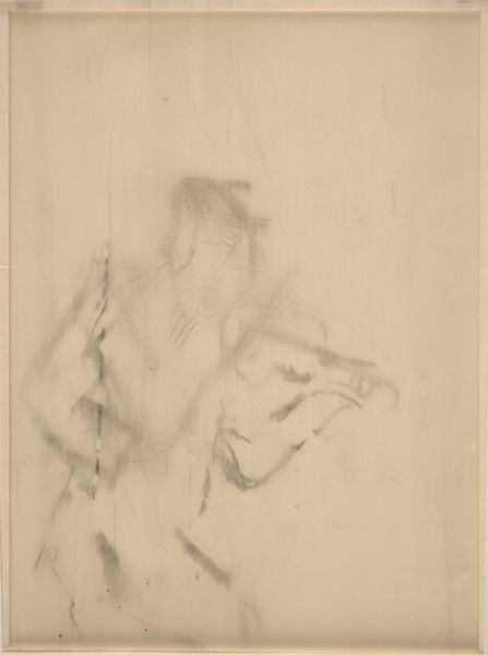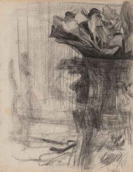 This is a drawing by Pieter de Josselin de Jong, titled "Worker in a Steel Factory". It’s made with black and white chalk on paper, likely created on site in the steel factory itself. The choice of chalk is significant here, it’s a medium that allows for quick, expressive marks, capturing the fleeting movements and atmosphere of the industrial setting. Look closely, and you can see how the artist uses broad strokes to convey the figure’s muscularity and the weight of their labor. The limited palette of black and white emphasizes the stark, grimy reality of factory work, hinting at the social and economic conditions of the time. De Jong's engagement with this subject matter elevates the everyday experience of labor to a subject worthy of artistic attention, challenging traditional hierarchies between fine art and depictions of working-class life. Through his deliberate use of materials and mark-making, the artist invites us to consider the humanity and dignity of the steelworker.