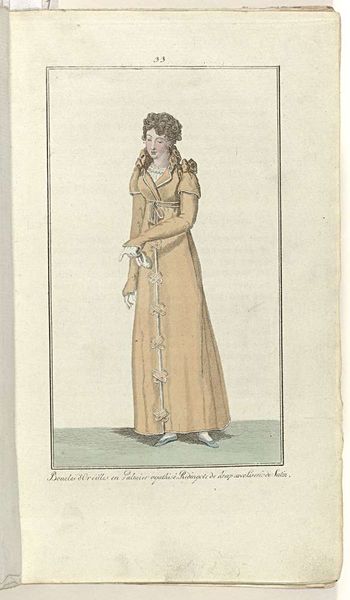 This is an engraving from September 1808 by an anonymous artist, created for the journal "Elegantia, of tijdschrift van mode, luxe en smaak voor dames," which translates to "Elegantia, a journal of fashion, luxury, and taste for women". At a glance, this image presents a vision of feminine grace and refinement but when viewed through a wider lens it’s clear that the image reflects not just fashion, but also the socio-economic hierarchies of the early 19th century. This fashion plate offers insights into the restricted roles of women during the Napoleonic era, where appearance was a key aspect of social identity. The delicate fabrics and meticulous details speak to the privilege and leisure afforded to a certain class of women, while also hinting at the labor and resources required to maintain such standards of elegance. What stories do the clothes tell us; of the women portrayed in them and the artist depicting them?
