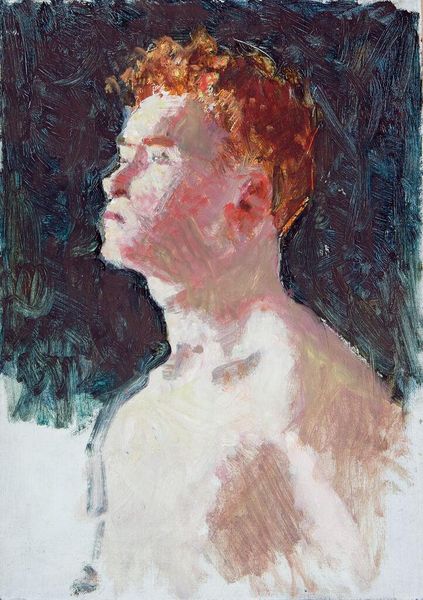 Editor: This is "William J. Vincent" by Denman Waldo Ross. It's a striking profile, rendered in what looks like oil on canvas. What intrigues me is the textural contrast between the subject's smooth skin and the almost aggressively applied paint in the background. What do you see in this piece? Curator: I'm drawn to the labor evident in the application of paint. The impasto suggests a deliberate, almost performative act. I'm interested in the source of the pigments used, and the social conditions that informed Ross’ choice to depict his subject in this particular way. The materials themselves carry a history. Editor: That's a different angle than I was expecting. It’s fascinating to consider the socio-economic implications behind the brushstrokes themselves! Curator: Indeed, by examining the materiality and production, we can challenge the traditional hierarchy between art and labor. It’s about seeing the art object as a product of its time.