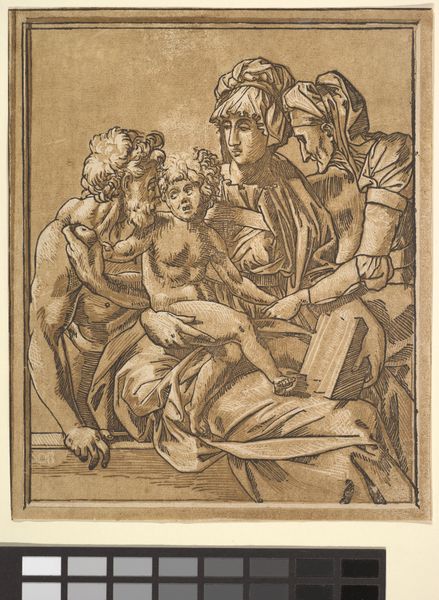Editor: We're looking at "Holy Family," an intaglio print made sometime between 1539 and 1549 by Master ND, currently held at the Metropolitan Museum of Art. The reddish-brown ink gives it a warm, aged quality. It feels less polished, more immediate than other Renaissance depictions of this subject. What strikes you about this piece? Curator: What's most interesting to me is how this print, as a reproducible image, engages with the broader cultural function of religious art at the time. Think about the proliferation of printed images during the Reformation. Editor: So, this artwork might be related to the Reformation? Curator: Exactly. The distribution of prints allowed for wider access to religious imagery beyond the Church's control. Consider the artist's choice of rendering the Holy Family in this particular style. What impact might its style have had on the average person viewing this? Editor: Maybe the somewhat raw style, due to the etching process, made it feel more accessible and less idealized than paintings commissioned by wealthy patrons? A bit more human? Curator: Precisely! The very act of producing and circulating this print becomes a form of participation in the religious and political debates of the era. The work takes on a life beyond simply depicting a biblical scene. Do you notice any specific iconographic details that speak to the context? Editor: Not really, besides the general scene. Curator: It is subtle! Overall, I believe that we can appreciate art beyond its pure visual beauty, diving into its potential social context and public reception, as was its impact at its particular moment of time. Editor: I’ve never considered a print's "publication" as such an important facet, it’s given me a richer understanding. Thanks!