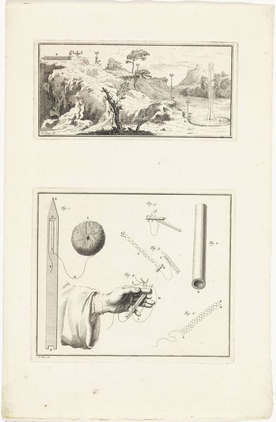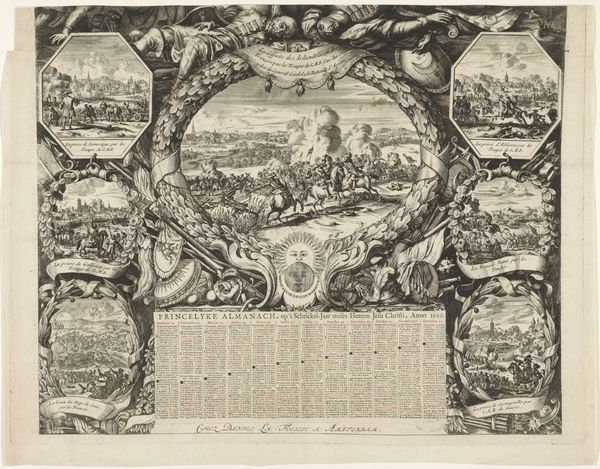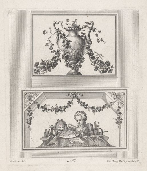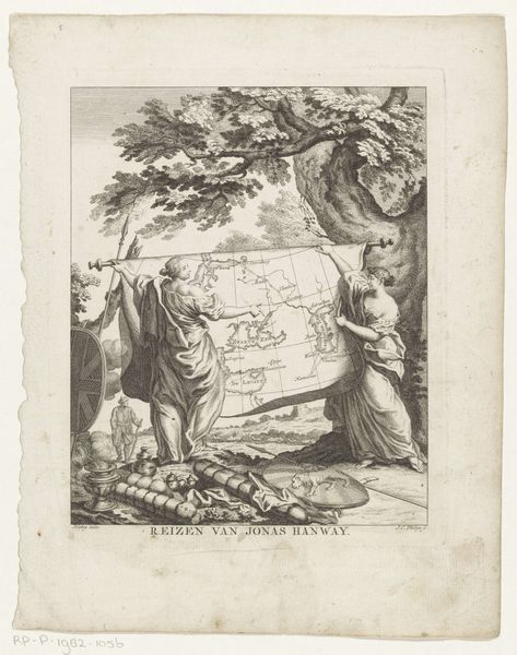 Editor: This drawing by Jan Goeree, "Two Maps of Ancient Rome with a River God and Romulus and Remus", was made between 1690 and 1704, using ink and engraving. It's fascinating how he combines cartography with classical mythology, but the way the maps are framed within the larger composition feels quite deliberate. How do you interpret this work, considering the historical context? Curator: Well, the drawing exists in a very specific time and place—the late 17th century. Goeree, a Dutch artist, is looking back at Rome during a period of intense cultural interest in classical antiquity. This interest was, in part, politically charged. Think about the rising nation-states in Europe; each looked to Rome as a model, trying to connect their power to that of the Roman empire. So, what does this drawing tell us about that impulse? Editor: It almost feels like Goeree is using the maps not just for accuracy, but as props in a theatrical display. The river god and Romulus and Remus add a layer of... propaganda, maybe? Curator: Precisely. Consider where such a drawing might have been displayed or reproduced. It was likely intended for a wealthy collector's cabinet of curiosities, or as an illustration in a scholarly book on Roman history. Therefore, the image served not only as a visual record, but also as a status symbol—evidence of the patron’s classical learning and sophisticated taste. Can we see how the formal aspects enhance the prestige? Editor: Absolutely! The careful detail, the inclusion of allegorical figures... it elevates the map from a purely functional document to a work of art, associating the owner with the grandeur of Rome. Curator: And what do you now notice when we consider this as not only an aesthetic experience but a political one as well? Editor: I now have a new understanding that an art is also charged and designed to reflect, but also to drive the cultural environment in that space. Thank you for sharing! Curator: And thank you, together, we've exposed how art both reflected and actively participated in crafting perceptions of power and history.