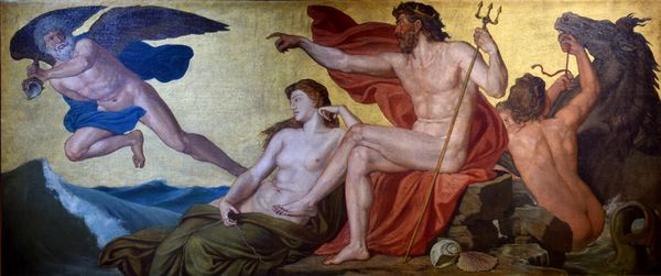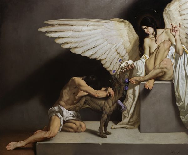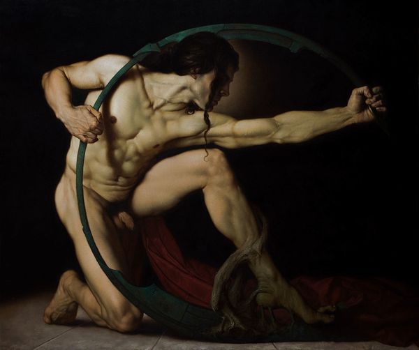 Curator: I find myself a bit breathless just looking at this canvas! The sheer momentum—almost dizzying. Editor: Well, you're in good company. This is Guido Reni's "Atalanta and Hippomenes" from around 1625, currently residing at the Museo del Prado. Oil paint on canvas depicting a moment from Roman mythology. It's quite a work. Curator: Mythology translated into raw, athletic dynamism. It feels...urgent. I mean, look at the fabric billowing behind them—the drapery feels as alive as the figures themselves! Are they flying, running, dreaming? Editor: Precisely! And if we zero in on that drapery, consider the materiality itself: probably linen or hemp. Woven. Then, it has been dyed. Reni and his workshop would need access to and relationships with weavers and dyers and tailors. The production of such a work implicates a whole socio-economic web that goes well beyond Reni himself and any singular genius narrative we may apply. Curator: Oh, definitely! I like that idea. But zooming back out, there's a drama beyond mere physical exertion. I see desperation, maybe even a bittersweet acceptance of fate playing out on their faces. Is Atalanta happy to be tricked, is Hippomenes haunted by what he did? That single glance she casts seems to betray the truth. Editor: I read a different tone altogether. Look at the crisp edges on the shadows, the deliberate contrast between light and dark, and think about the cultural moment Reni occupied: the influence of the Catholic Church and patronage networks in Bologna. He’s really working his oil paint in line with broader conventions and for a market hungry for moralizing myth. Curator: Agreed. But the texture almost pulses – those muscles, those limbs straining... it elevates the scene. He took what were standard materials in painting, and managed something exceptional, a testament to the spirit’s wild pursuit. Editor: You've beautifully captured the visual intensity. All this talk about running… reminds me it's time to go! Curator: And me, that I'd happily chase that feeling again sometime soon!