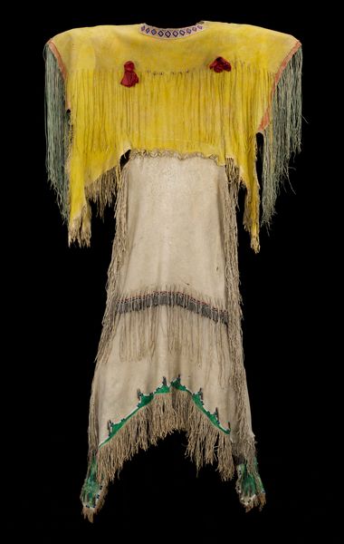 This hat was made by people of the Turkmen cultural group of Central Asia in the later nineteenth or early twentieth century. It would have been worn by elite women as part of a traditional wedding ensemble. The hat combines many of the distinctive materials and techniques that are representative of the culture. The cut tassels, stamped metal plates, and use of carnelian are typical of Turkmen jewelry practices. It also integrates embroidered panels that are typical of the needlework traditions for which the culture is well known.