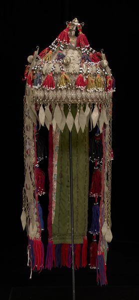 This hat, made with silver, beads, and fabric, is of unknown origin. It displays the cultural and social life of its time, and its creators. The hat is covered with silver ornaments and the colors and shapes could denote tribal or religious affiliation. The coins and metalwork may have served as portable wealth and social signaling. Examining the materials can offer insight into trade routes, and craft traditions. The hat's condition and any signs of wear and repair might suggest its history of use. The designs and motifs are key, they likely reflect cultural beliefs and local aesthetics. This hat prompts us to consider the politics of imagery, asking what social conditions shape its creation. Further research into similar hats, combined with anthropological and historical sources, could reveal more about the cultural meanings embedded in this striking piece. The hat serves as a reminder that art and material culture are deeply entwined with social and institutional contexts.