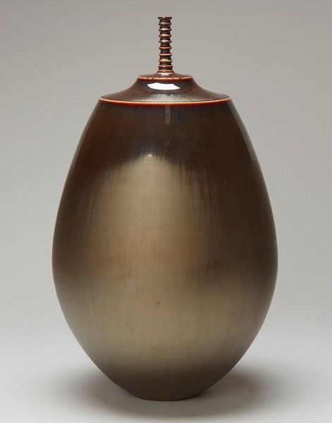 This Vase was made by Robert Barnard, sometime after 1949, and it’s crafted from stoneware. The earthy tones, the mottled surface, it all speaks to a process deeply connected to the material itself. It's like Barnard let the clay and the fire have a conversation, and this vase is what they came up with. Run your eyes over the body of the vase; notice the way the color shifts from a deep reddish-brown at the bottom to a smoky grey near the top. That's the magic of the kiln, a dance of heat and chance. The texture isn't smooth or polished, but alive with tiny imperfections. You can almost feel the artist's hands coaxing the clay into shape, leaving their mark on its surface. See those subtle marks around the belly of the piece? To me, they're like whispers, like the clay is telling a story. Thinking about this, I'm reminded of Lucie Rie, another potter who knew how to let the material sing. Like Rie, Barnard isn't just making a vase, he's capturing a moment, a feeling, in clay. Art isn't about answers, it's about questions, about keeping the conversation going.