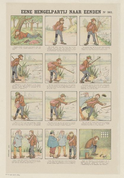 This untitled comic strip, by Monogrammist G.J., uses ink and gouache, and feels like a real balancing act. Each panel is a little stage, isn’t it? The drawing style has this delightful, almost naive quality, but then you notice the precision in the lines. It's like the artist is both documenting and inventing a world at the same time. The colour palette is muted, but look at the bold red trousers in the fourth panel down. That’s a real visual punctuation mark. It directs your eye and adds a sense of momentum, almost mirroring the movement of the character kicking his leg up in the air. It's the artist letting loose, reminding us that control is always a negotiation with chaos. I’m reminded of the work of George Grosz, both using a cartoonish style to offer social critique, but Monogrammist G.J. lacks the harshness of the German artist, and creates a more charming and humorous narrative. It’s all about the push and pull between intention and accident.