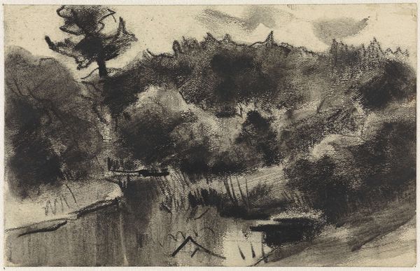 Curator: The drama! It feels as if I’m looking at a volcanic eruption, the shades of gray fighting for dominance. Editor: Well, it’s definitely dramatic. I’m struck by the ephemerality of it all—the charcoal and graphite on paper feel so fragile in contrast to the imposing subject matter. Curator: We're looking at a drawing called "Rising Fog" by Richard Biringer, currently held at the Städel Museum. Biringer has really captured a moment of transformation. The fog, rendered in sweeping charcoal strokes, obscures and reveals in equal measure. It speaks to the transience of vision, a reminder that our perception is always shifting. Editor: And it echoes Romantic anxieties about the sublime power of nature, doesn't it? We see the smallness of human endeavor confronted by an overwhelming, unstoppable force. The fog, a kind of natural erasure, seems to threaten the very idea of fixed perspective, or maybe it re-conceives human insignificance under the eye of God, especially during a period of landscape paintings? Curator: Precisely! Think of fog as a veil, and veil in paintings—cultural symbol that conceal or reveal deeper truths. What do we hide? How does landscape art reveal, expose hidden or forgotten meanings and values that were always present and will return in time? The light itself seems to be struggling to break through, which gives me hope—the paper shines brightly! Editor: The artist's choice of media heightens this sense of impermanence, of course. Graphite and charcoal allow for a kind of soft blending and smudging that oil paint simply can't achieve in the same way. Curator: The tonal range is also quite stunning. The darkest passages carry the weight of unspoken burdens and sorrows, balanced by these areas of pure, unadulterated paper which offers this subtle moment of illumination. I wonder whether "rising fog" reflects a personal moment for Biringer during a transformative point of his life. The drawing may not be dated, however. Editor: Absolutely, that visual dichotomy allows for the suggestion of complex power dynamics within the image: the heaviness of reality countered by the fragile persistence of hope and endurance. Curator: Well, contemplating these emotional nuances with its raw simplicity is what brings "Rising Fog" to life and I see beyond charcoal, graphite and paper. Editor: Agreed. This is more than a drawing; it's a visual poem on the delicate balance between destruction and creation. It makes us think critically about art, history, but most of all, humanity.