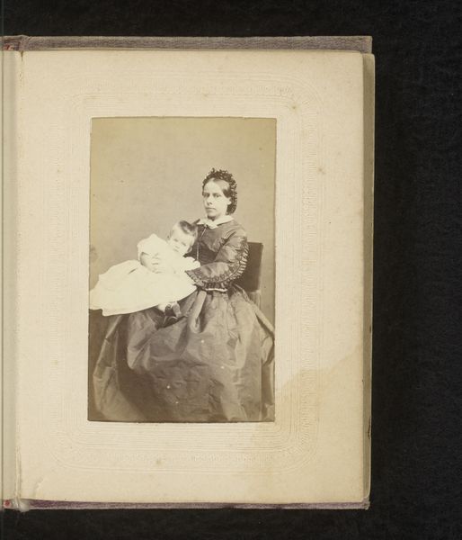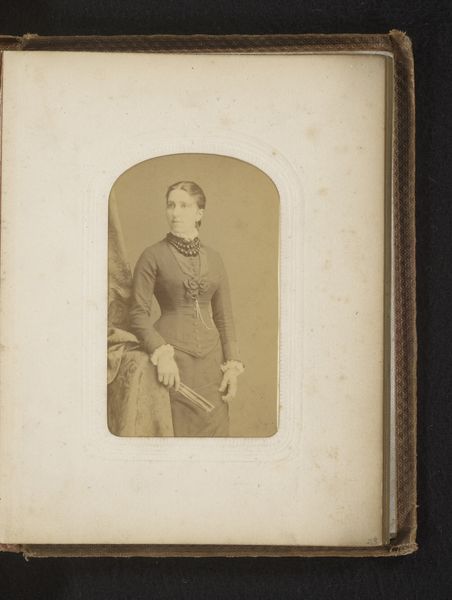 Editor: Here we have "Portrait of a Woman Standing by a Chair," a photograph taken between 1850 and 1867 by Henri Pronk. It's a formal portrait, very still and composed. What do you see in this piece that speaks to its historical context? Curator: This photograph offers a glimpse into the construction of female identity and class during the mid-19th century. Consider her posture, the detail in her dress, even the chair – these were carefully chosen elements. How do you think this image relates to ideas of Victorian femininity and social expectations? Editor: Well, she seems very constrained, almost posed like an object rather than a person. Her clothing looks quite restrictive. Was this a common experience? Curator: Absolutely. Photography became a tool for solidifying social norms. Middle and upper-class women were often portrayed as emblems of domesticity and virtue, their individual desires often suppressed by societal pressures. How does the photographer, Pronk, reinforce or perhaps subvert those expectations through his artistic choices? Editor: I hadn’t thought of the photographer having agency in it. It seems like they are simply reflecting what they see but that can be deceptive. Curator: Precisely! The photographer holds power in deciding how a subject is presented and perceived. Images like this often mask the complexities of women's lives, particularly their political and intellectual contributions that went largely unrecognized. Editor: So, it's more than just a portrait; it's a social document that reveals power dynamics. I'll definitely look at 19th-century photography differently now! Curator: Indeed! By critically analyzing visual cues, we can better understand how art shapes our understanding of history and continues to inform our present.