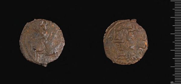Editor: This is an Anonymous Follis from the Harvard Art Museums. It's a small coin, and it's really worn down. What can you tell me about this piece and its cultural significance? Curator: This coin reflects the Byzantine Empire's efforts to standardize religious imagery in public life. Minting these coins, devoid of an emperor's image, served to reinforce religious unity. How do you think the use of such imagery might have impacted society? Editor: I suppose it could reinforce the power of the church, making faith a part of everyday transactions. Curator: Exactly! It's a fascinating example of how art was used to influence societal norms and even political power. I learned a lot! Editor: Me too! Thanks for sharing your insight.