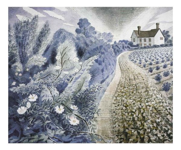 Eric Ravilious made this scene of ‘New Year’s Snow’ with watercolor and pen and ink, sketching out the winter landscape with what seems like a light touch. But look closer: there’s a real precision here, especially in the cross-hatching that defines the hills and sky, giving texture to the snow-dusted fields. Ravilious’ marks are meticulous. You get the feeling he really took his time observing the scene. See how the wagon in the foreground is rendered with such care, its lattice sides casting delicate shadows on the snow? It reminds me a little of Edward Bawden, another British artist who shared a similar eye for detail and a love of the everyday. Both artists see the world as something to be appreciated for its quiet beauty, even on a cold winter's day. Ultimately, this piece is less about a literal depiction of snow and more about Ravilious’ own way of seeing, thinking, and feeling the world around him.