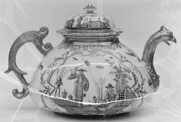 Editor: Here we have "Marital discord (one of a pair)," a porcelain sculpture crafted between 1761 and 1771 by the Frankenthal Porcelain Manufactory. The scene is quite… dynamic! There’s a woman seemingly about to strike a man with what looks like a spoon. What do you make of it? Curator: It's a fascinating snapshot of 18th-century social anxieties rendered in a delicate material. Beyond the immediate narrative, think about the role of porcelain in that era. Editor: It seems to be making a scene in somebody’s parlor! Curator: Precisely. Porcelain figures weren't merely decorative; they were often vehicles for social commentary, aimed at a rising bourgeois class. A critique on the behaviour of elite? Editor: Oh, I see! Like a cautionary tale against the pitfalls of domestic life presented to a specific audience. Are we meant to sympathize with one figure or the other? Curator: That's where the politics of imagery come in. The woman's aggression challenges conventional notions of femininity. How does the artist invite or reject potential sympathy, do you think? Is it gendered? Is the humor softening a deeper social commentary? These objects were incredibly public, designed to provoke conversations around morals, manners, and social roles. Editor: I hadn’t considered how deliberately these figures were designed to be conversation starters. Looking closer, the rococo details actually seem to heighten the sense of satire. I will see porcelain differently now. Curator: Exactly! It’s a reminder that art, even in its most seemingly innocuous forms, always exists within a specific social and historical framework, participating in a wider cultural dialogue.