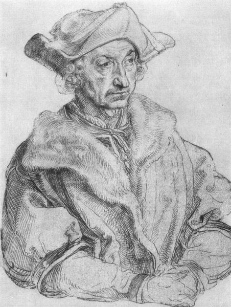Editor: Here we have Albrecht Dürer's "Self-Portrait at 13," created in 1484 using pencil on paper. It's quite striking for its detail. I'm curious, looking at this early self-portrait, how do you interpret the significance of a thirteen-year-old artist representing himself so deliberately? Curator: Well, the choice of a self-portrait is laden with potential meanings, especially considering the young age of the artist. Notice how Dürer captures himself with such careful attention to detail, almost a desire for self-knowledge and perhaps even an assertion of identity. The gesture, pointing outward, is particularly compelling. Editor: The pointing…it feels assertive. Almost like a proclamation? Curator: It could be. Consider that, culturally, the hand often signifies action, intention, direction, and even divine blessing. The act of Dürer, a mere youth, pointing outwards – what might he be directing us towards? Is it an invitation to see the world through his artistic vision, or perhaps a subtle nod towards his future endeavors and legacy? It's also worth pondering about Dürer looking to his right, slightly beyond the viewer – this is also the "right" or "correct" way. Is it meant to show direction for viewers, or perhaps point to the path the young Durer is now on? Editor: That makes me think about how we construct identity. Dürer is consciously creating an image of himself. He is crafting a legacy through images. Curator: Precisely! What Dürer offers us isn’t just a picture, but a powerful symbolic representation that persists across time. We see a self-aware young artist establishing himself and a testament to his unwavering commitment to art, at least that’s how he wished to be perceived by posterity. Editor: Thank you. I never thought of a self-portrait as quite so complex, more than simply capturing likeness. It makes you wonder what choices artists make when they look at themselves in a mirror! Curator: It certainly provides a window into the enduring power of symbols. The images they generate can outlive the artists themselves, shaping their lasting impact on us and the world around them.