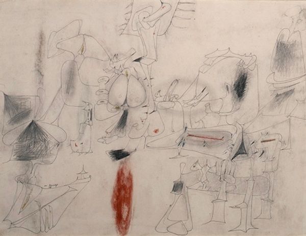 Arshile Gorky's "Good Hope Road" presents a delicate interplay between form and abstraction, achieved with watercolor and pencil. The composition, characterized by its sinuous lines and ethereal washes of color, evokes a dreamlike space. Shapes emerge and dissolve, resisting fixed representation. Gorky's approach destabilizes traditional artistic boundaries, venturing into a realm where forms suggest rather than define. The interplay between the fluid watercolor and precise pencil lines creates a tension that animates the surface. The palette, muted yet punctuated by moments of intense color, adds to the painting’s emotional complexity. This semiotic system of colors and forms suggests multiple interpretations, reflecting broader philosophical concerns with perception and reality. Ultimately, it invites an ongoing dialogue, challenging us to reconsider established notions of space and meaning in art.