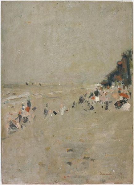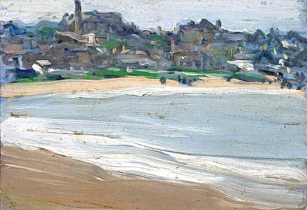Samuel Peploe painted “On the Brittany Coast” with oil on canvas using brushes. The thick brushstrokes of paint create a palpable texture on the canvas, capturing a fleeting moment on the coast of France. Peploe, a Scottish Colourist, used a technique informed by Impressionism, where colour is used to convey the feeling of light, and the qualities of the scene, rather than as a direct representation. The broad strokes of colour show both the skill of the artist, as well as an embrace of modern industrialization, where materials like oil paint are readily manufactured. This artwork is not just a landscape, it’s also a product of its time. The mass production of materials, and the rise of leisure time for the middle classes, allowed artists to create these scenes of everyday life, inviting us to consider the ways in which society and industry intertwine with art. By embracing both material and context, we gain a fuller understanding of Peploe's work.