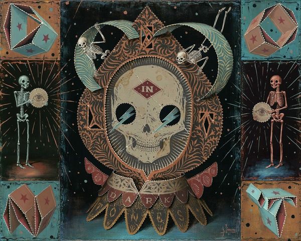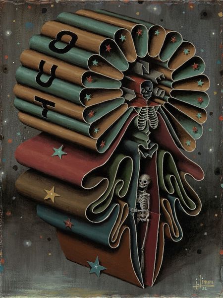 Jason Limon made "Whole", and what a trip it is! Right away, I'm drawn to the triptych layout – it feels like flipping through the pages of some kind of bizarre fairytale, where everything's a little off-kilter in the best possible way. The hands on either side are so ornate, almost like anatomical valentines, full of all these tiny filigree details that look like they were made with the tiniest brush you ever saw. Then there's that skull in the middle, complete with a clock in its brain! It's rendered in chalky layers of grey, brown and white. I love how the artist uses texture and color to create a sense of depth and dimension. It's kind of like you could reach out and touch these objects, even though they exist only in the artist's imagination. And you know, it reminds me of a modern take on the old vanitas paintings, where everything is symbolic and ripe for interpretation. Like Joseph Cornell, Limon is constructing small worlds. Maybe the whole point of art is to keep the conversation going, even when we don't have all the answers?