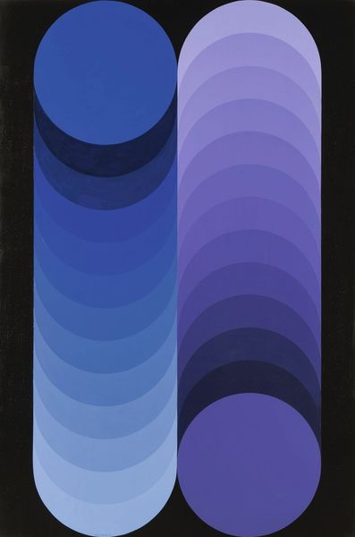 Victor Vasarely made Gironde, a geometrical composition in blue and green, sometime in the 20th century. The painting is all about how simple forms and colours can mess with your perception. Vasarely lays down these thin, precise stripes, and each one shifts in shade. It's like he's tuning the colour to make your eyes vibrate. The surface is smooth, almost machine-like, which is part of the point: it’s less about the artist’s touch and more about the optical effect. Look at how the blue and green meet; there's a dark line there. It's so precise it feels like it's cutting into space. Vasarely was interested in geometric abstraction, like Josef Albers, but he pushed it further into this realm of visual tricks. It’s a trip! He reminds us that seeing isn't just passive; it's something our brains actively construct.