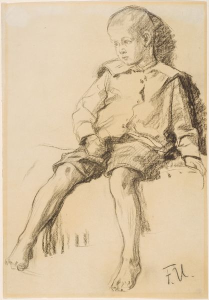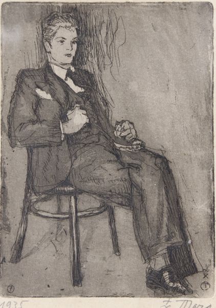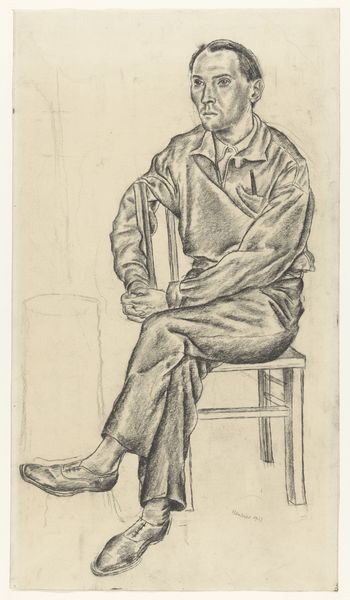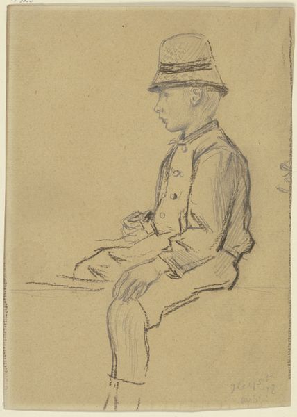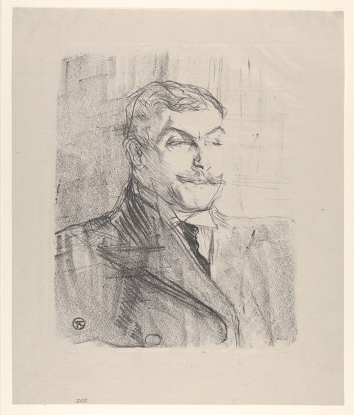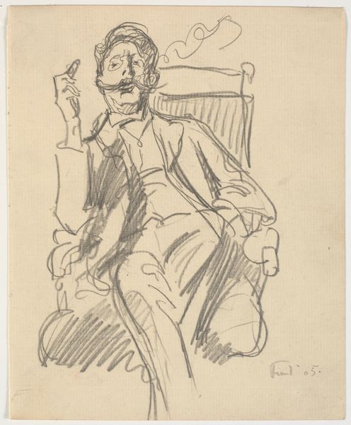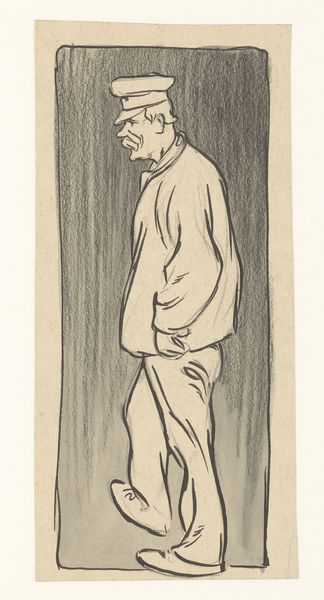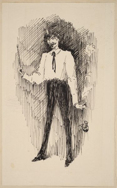 Curator: This ink drawing, "Zittende man," or "Seated Man," by Jan de Waardt, dates from between 1881 and 1899, and is currently held here at the Rijksmuseum. Editor: My first impression is how confined he feels. The hatching around him suggests an enclosure, not entirely comforting, is it? Curator: That’s interesting. From a material standpoint, the rapid, almost frantic use of pen and ink points to a specific urgency in its production. The starkness speaks volumes about the economic constraints often placed upon artists at that time, and even about the availability of materials to make his art at all. Editor: Exactly! And who was de Waardt portraying, and for what audience? The almost caricatured details – the pointed mustache, the sharply angled coat – hint at a satirical commentary on the bourgeoisie, who, remember, are among the new prominent public of the Rijksmuseum, beginning in 1885. Curator: Good point. His posture, so deliberately staged, might actually undermine any real sense of self-possession. It appears performative. He might well be someone who toils but appears to float free of labor. Editor: I’m glad you point that out. And let’s think about its reception back then. Viewers would likely have situated it within the ongoing debates about social class, maybe prompting uncomfortable self-reflection, if the viewers felt portrayed in him. It also reminds viewers about who can and can't occupy those seats in public art spaces. Curator: Yes, absolutely. His almost disembodied air reinforces that sense. The artist, De Waardt, using minimal materials has brought forward that divide between the working class and who they want to portray. It’s a study in social tensions made potent through the physical act of creation. Editor: Ultimately, seeing “Zittende man” through our contemporary lens urges questions of what’s changed or stayed static regarding access and depiction. The man feels simultaneously dated and familiar, doesn’t he? Curator: Definitely. This work compels us to reconsider the narratives we construct about art and its capacity to illuminate societal power dynamics throughout history, even with so simple a technique.