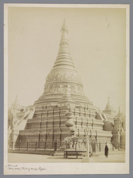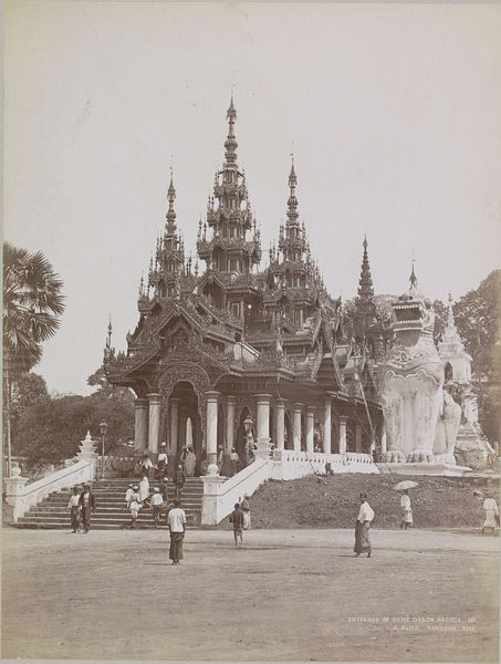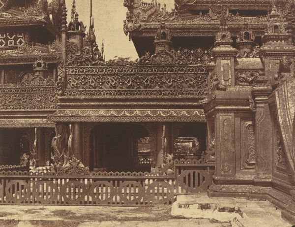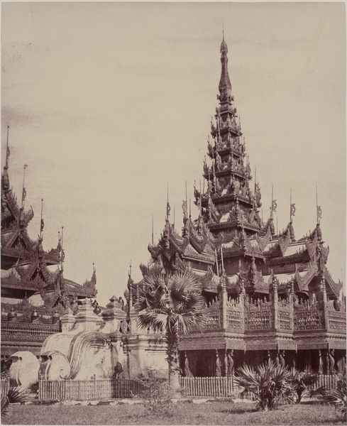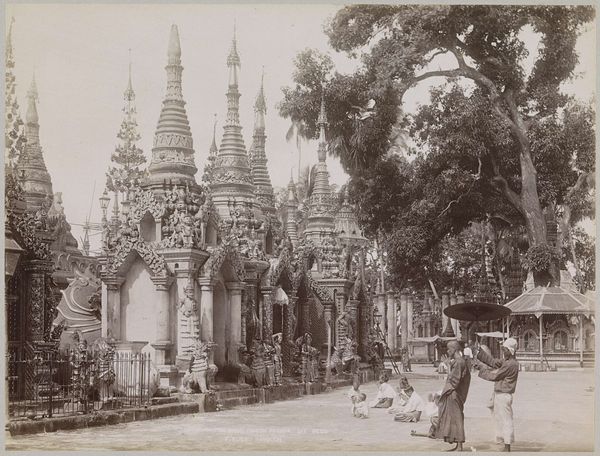 This albumen print by G.R. Lambert & Co. shows the Temple of the Emerald Buddha in Bangkok, Thailand. The Temple, or Wat, is arguably the most important in Thailand. The visual codes in this image – the towering spires, the intricate carvings, and the imposing scale – speak to the power of both the monarchy and the Buddhist religion in late 19th century Siam. Photography at this time was still a relatively new technology, and its use in documenting architecture and cultural sites reflects the growing interest in preserving and studying historical monuments. It also demonstrates the influence of European colonial powers in Asia, as photography was often used as a tool for cataloging and understanding foreign cultures. Images like this served to shape Western perceptions of Siam. To fully understand the nuances of this image, we can consult archival records, travel accounts, and studies of Siamese history and culture. Through such research, we can better appreciate the complex social and institutional forces that shaped its creation.