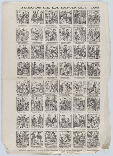 Curator: This engraving, created between 1806 and 1830 by Johan Noman, titled "Wilt gy, kindren, u vermaaken, / Allerhande soort van zaaken," presents us with a series of vignettes. Editor: It’s… busy. There's a folk-art rawness to it. Almost like a proto-comic book, perhaps a moralistic guide rendered through printmaking, intended for the masses. Curator: Exactly. Noman was a book seller and publisher in Z. Bommel, producing printed matter for wide distribution. Notice the variety of scenes; tradespeople, games, moments of instruction. This speaks to the rise of print culture and accessible materials. How could production enable, as you hinted at, instruction or moral lessons for ordinary citizens? Editor: Each miniature acts as a microcosm of its time, capturing moments of work and leisure across Dutch society. But it’s not neutral. The act of printing itself requires resources and labour, the paper, the engraving. We need to be critical: who funded this? What social strata were considered the 'ordinary' people needing guidance? Curator: That’s a very important lens to use on Noman's piece, but I am curious as to how a nineteenth century citizen might encounter this print. Consider the performative aspect – was this print pinned to the wall or circulated among families to inspire conversation and introspection. Editor: I see it being read collectively. Maybe during the evening. What does it tell us that people gathered and were meant to glean instruction and values from these depictions? Curator: It also suggests new forms of engagement and production: cheap paper meant affordability. Suddenly people can become literate in larger numbers; they could be enlightened or influenced, yes, but knowledge itself also becomes democratized in the process. Editor: I agree, democratization is central here. The scale and multiplication of images allows, possibly for the first time, for many communities to imagine or picture themselves reflected in artwork and society. Curator: Yes. As much as we examine the hands-on techniques involved and those broader material processes, situating those aspects politically—that is really the key to understand popular art. Editor: Indeed. Viewing this through both material and societal processes has helped to better contextualize and give voice to these overlooked artisans from history.