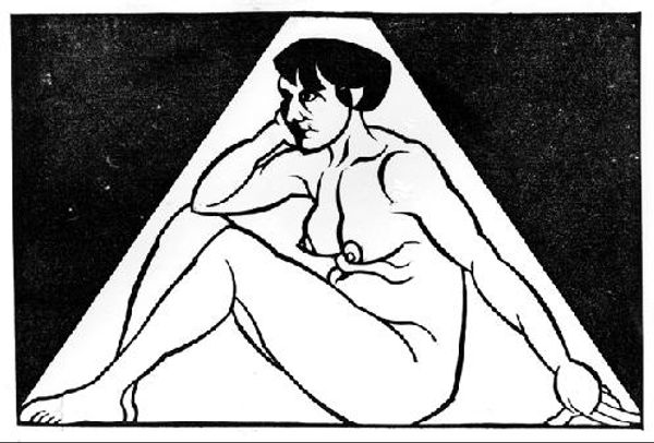 This is Flor de Pascua - Convention, a monochromatic print by M.C. Escher, and it’s all about lines, repetition, and maybe a little bit of self-reflection. Look at the bold black and white contrast; it’s so graphic. Escher isn't messing around with soft edges; he's giving us crisp divisions. There’s this figure in the middle – naked, lost in thought, almost like he's trying to figure out the puzzle of himself. And the vertical lines in the background and foreground? They're both a barrier and a framework, like the bars of a cage or the lines of a drawing pad. That little finger touching his lip, that’s a mark of concentration, of being caught in the act of thinking. The whole print has a similar feel to some of Otto Dix's more bleak self-portraits, where the artist is both subject and object, observer and observed. It’s a convention, sure, but what is he trying to figure out? That’s the real question here.
