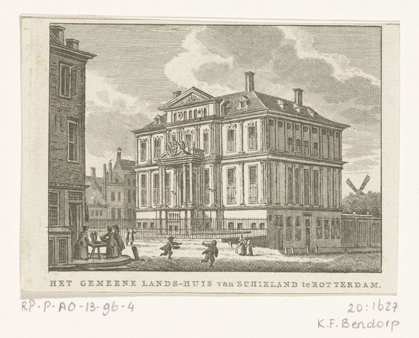 Johan Christoffel Schultz created this print of the Accijnshuis in Amsterdam in the late 18th century. It depicts the city's excise house, where taxes were collected on goods entering Amsterdam. The image presents a seemingly straightforward view of the building, but consider what it leaves out. The armed guards and laborers suggest the enforcement and economic activity central to the excise house's function. The prominent display of Amsterdam's coat of arms asserts civic authority. Made during the Dutch Republic, the print reflects the era's commercial power and the institutions that sustained it. Prints like these served a public role, visually representing the structures of governance and trade. To fully understand this image, we can explore municipal archives, economic histories, and studies of Dutch visual culture. Only through historical context can we grasp the social meanings embedded in this representation of Amsterdam's excise house.