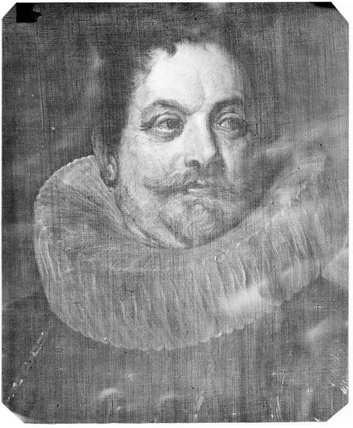Editor: Here we have an X-radiograph of "Male Portrait," by Paris Bordone. The film itself is 14 x 17. It's fascinating to see the layers beneath the surface. What can we learn from this radiographic view? Curator: This radiograph reveals more than just an image; it unveils the labor, materiality, and the artist’s process. How do the materials used – the canvas, the pigments – interact with the technology of radiography, and what does that tell us about art production? Editor: So, the technology used to create the image, the x-ray, becomes as important as the portrait itself? Curator: Exactly. It allows us to question traditional notions of artistic skill by understanding the means of production and the material conditions in which art is made. Editor: That's such a different way of looking at art! Thanks for sharing your perspective.