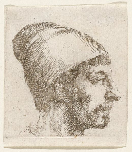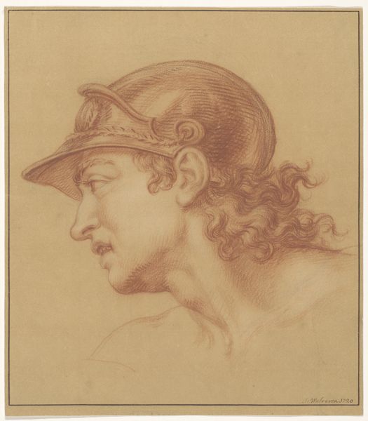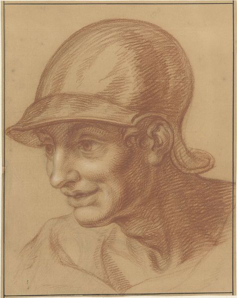 This is a red chalk drawing of a man's head with a helmet, created by Isaac Walraven in the 18th century. Red chalk, also known as sanguine, was prized for its warm hue and soft texture, perfect for capturing the nuances of human flesh. Notice how Walraven uses delicate strokes to define the contours of the face and helmet, creating a sense of volume and depth. Drawings like this were essential for artists during this period. It allowed them to study anatomy, practice their technique, and prepare for larger paintings or sculptures. The labor involved in creating such detailed studies was considerable, demanding both skill and patience. Yet, this painstaking process allowed artists to master their craft and produce works of lasting beauty. By appreciating the materials and making behind this drawing, we can move beyond traditional notions of high art, recognizing the value of technical skill and the importance of the creative process.
