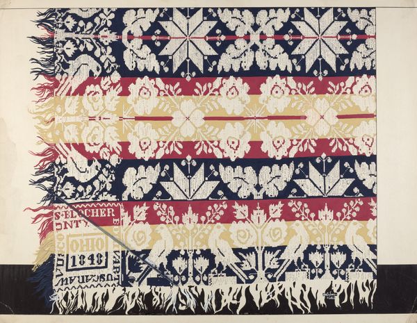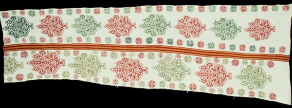 Curator: This object is a Woman's blouse, or Huipil, from the 20th century, housed right here at the Minneapolis Institute of Art. It's made of cotton, with these fascinating woven designs. What's your first impression? Editor: Total visual party! It feels joyful, a celebration of everyday life in bright reds, yellows and greens. Is there a story woven into all this geometry? Curator: Definitely! Each geometric figure, each band of color, likely holds specific cultural or personal meaning for the wearer and the community it comes from, a form of visual language. I see a lot of animal motifs here. Editor: You're right! There are deer and little human-like figures—like a whole little world frozen on fabric! Look how they are neatly repeated, creating rhythm. It’s interesting how rigid and loose the patterning is: tight control giving way to moments of creative abandon. The combination keeps it fresh, even playful. Curator: It speaks volumes, doesn't it? You've noted the rhythmic repetition and colour harmony, essential formal components; and if you analyze these components along with the patterning of animals it becomes quite powerful in expressing complex cultural narratives, beliefs, or even social status. Editor: It's interesting you say that. As intricate as this design is, it also feels deeply personal. Perhaps it reflects the hopes and dreams, or even just a glimpse into a day in the life of the woman who wore it? This feels less like a historical artifact and more like a piece of someone's soul laid bare for all to see. Curator: Beautifully put. Thinking about all of these elements it reflects not only incredible artistic skill, but also intimate storytelling tradition as well. These works offer profound insight. Editor: It reminds us of the power in clothing, really, doesn’t it? I mean we choose clothes, and it echoes who we are. So this one leaves you feeling like a story being beautifully told on somebody's shoulder.