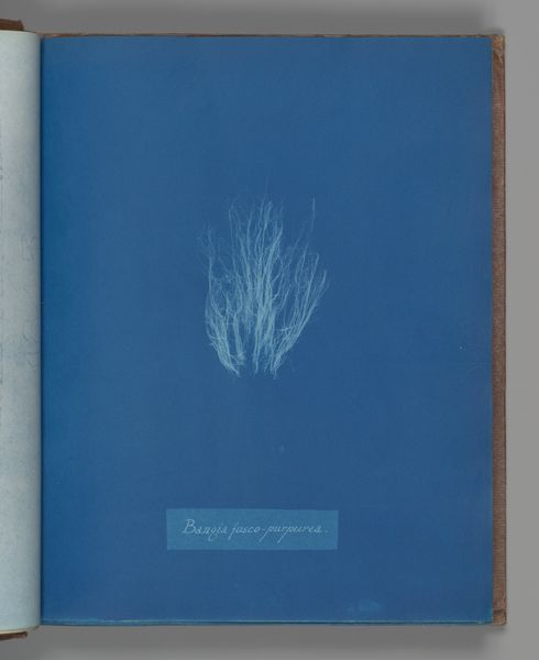 Anna Atkins created this cyanotype of Griffithsia corallina sometime in the mid-19th century. The print presents a delicate, almost ethereal form against a deep blue ground. The composition is simple yet striking, with the plant's structure elegantly displayed. Atkins's innovative use of the cyanotype process offers us a unique interplay between science and art. The vivid blue, a direct result of the chemical reaction to light, becomes a dominant feature that redefines our perception of botanical illustration. The stark contrast between the plant's form and the background emphasizes its intricate details, challenging traditional notions of representation. The form has a scientific quality while simultaneously evoking a sense of wonder. By focusing on the structure and form of the algae, Atkins invites us to see beyond its mere representation, encouraging an appreciation of its inherent beauty and complexity. This work is a testament to the power of art to reveal the unseen structures of the natural world.