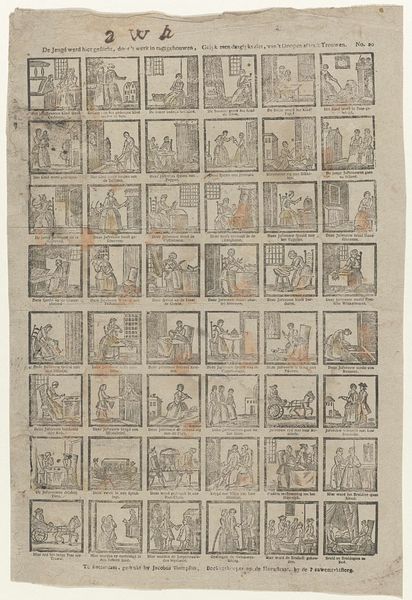 This print, "Het daaglyks werk der dienstmeisjes", or "The Daily Work of the Maids," was made in Rotterdam by Jacobus Thompson. It’s an intriguing visual document of the lives of working-class women in the Netherlands. These small scenes offer us a glimpse into the labor, and perhaps the social standing, of maids. This would have been a period of growing urban centers and shifting class structures. Consider how institutions of printing and publishing might be engaging with ideas of class, labor, and social mobility. What messages about the social hierarchy are being communicated here? Are these images designed to uplift or demean the maids? As historians, we might use sources such as census data, household accounts, and even literature of the time to piece together a more comprehensive picture of the world these images represent. By understanding the cultural and economic context, we can begin to interpret the social commentary embedded within the artwork.