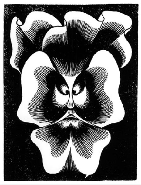 Curator: Ah, M.C. Escher’s "Twon Tree," created in 1919. It’s a woodcut print— stark contrasts in black and white, typical of his early period. What catches your eye first? Editor: The energy. There’s this madcap figure in the lower right fleeing something under this swirling, cosmic, but somehow deeply Celtic tree. It's an anxiety dream in a forest. Curator: Fleeing what, indeed? Trees in art have long served as potent symbols of life, growth, interconnectedness. Escher, in his youth, played with that trope, interweaving pagan symbolism, such as the ancient concept of sacred groves. What meanings do you see intertwined here? Editor: It's almost aggressively symbolic, isn't it? Those intertwining branches… they could be roots. Above them the eclipse suggests hidden, perhaps threatening knowledge. It hints at chaos but with this geometric discipline underneath trying to tame the chaos into a digestible narrative. Failed though, since my narrative goes nowhere, haha. Curator: It's tempting to over-intellectualize Escher sometimes! But you've spotted an important tension, that push and pull. Consider the era, just after World War One, there was immense psychological fallout to process, a turning to simpler beliefs of the past even though these traditions had failed as well. His imagery is tapping into that feeling directly. Editor: I can feel it, it gives me a little bit of vertigo. I'm definitely that stick figure at the bottom scrambling across the plains in a fever. Maybe there’s a dark fairytale lurking here… a journey, or an escape from a collapsing worldview. And woodcut! You really feel his physical act in creation, that deliberate cutting of wood away, and what is left. It mirrors an experience in this illustration. What is left when something gets cut away? What story can exist here? Curator: Absolutely. Woodcut forces choices— clarity born from subtraction, a stripping-back. That figure, by the way, can't be pinned down too closely. The universal plight to define meaning against daunting backdrops that appear meaningless until something breaks inside us to see an altered perspective on the way we understand things as people and their symbols for meaning and story-telling is powerful even still today. Editor: So well-put, you pulled me from running back into your intellectual safety, where I can feel more secure, haha! Curator: Well, maybe that's where Escher wanted to put you as a person experiencing this image—to exist in both places. One feels safe while the other pushes us closer towards what we truly are: not defined but in-becoming through our understanding. A dichotomy the piece is well structured and positioned to invite from those in the foreground running for the understanding. Editor: The race continues.
