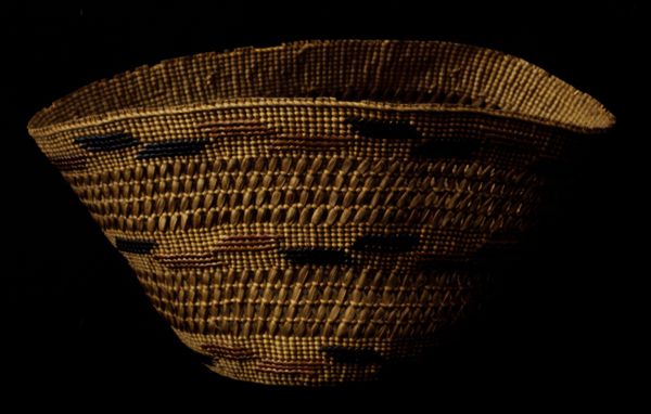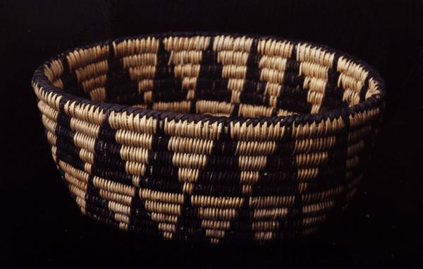 This basket was made by the Tohono O’odham, also known as the Papago. It’s an amazing example of how simple materials can create complex patterns. The way the black and beige threads are woven together, it’s almost like the basket itself is drawing. Look at the texture, the way the light catches on each strand of fiber. The artist repeats bands of solid colour, and broken, labyrinthine lines. The thickness of each stitch and the way it loops around the form create a very physical, tactile experience. It makes you want to reach out and touch it, feel the give of the material. The contrasting colors create a push and pull, like a conversation between light and shadow. Baskets like this remind me of Anni Albers’ weaving, or even some of the minimalist sculptures of Agnes Martin. There is something so visually satisfying about the repetitive patterns and the careful attention to detail. These artists show us that art isn't about perfection, it’s about the process of making and discovering.