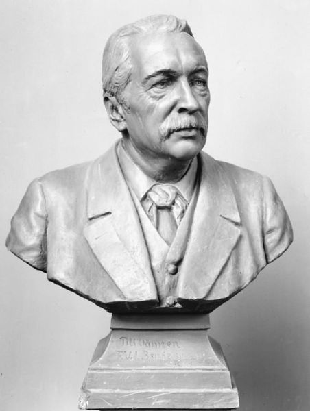 Editor: This is "The Librarian Carl S. Petersen," a marble sculpture by Max Meden, created in 1921. The stark black and white image gives the sculpture an austere, almost intimidating feel. What can you tell me about its historical context? Curator: Looking at it through a historical lens, we see this work situated within a larger debate about the purpose of public art. This sculpture commemorates Carl S. Petersen, a librarian, and was likely intended to convey a sense of authority and intellectual gravitas. How do you think the choice of marble contributes to that intention? Editor: Marble suggests timelessness and importance, definitely aligning with the desire to create a lasting impression. Did the public reception reflect these goals at the time? Curator: That's an important question! Public reception to monuments like this was often tied to broader socio-political currents. Who Petersen *was*, and what values he represented, would have been crucial. Think about how library science was evolving in the early 20th century and the increasing importance of public institutions. It is reasonable to suspect that people at the time would want to commemorate this librarian and bring to the community a figure they can look up to, and also that classical forms legitimized these contemporary figures and institutions. How might this tie into patronage, then? Editor: It makes sense that funding could have played a huge role. Depending on whether the sculpture was commissioned by the library itself or a private patron, the artistic expression and public image would likely vary to satisfy the source. So, we’re not just looking at the sculpture itself, but the entire system that brought it into being. Curator: Exactly. And by understanding the cultural and political landscape surrounding its creation, we gain a much deeper appreciation for its significance, one that goes beyond simply admiring the artistry of it. Editor: This conversation shifted my understanding from seeing the artwork to analyzing all factors related to its existence! Thank you. Curator: Indeed, and by engaging in critical inquiry, we enhance our own public function as observers of culture and history!
